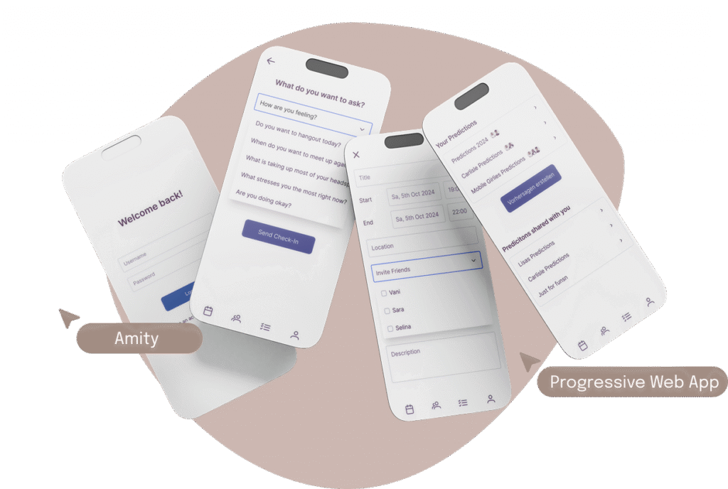 Amity was created in the third semester as a group project by three Master’s students. The goal was to design and develop a mobile-first web application that helps friends plan and coordinate activities with ease. Beyond the technical implementation, the project covered the entire stack from frontend to backend, while also exploring design, usability, and playful interaction concepts. The result is a user-friendly platform that balances practical functionality with features aimed at strengthening social connections.